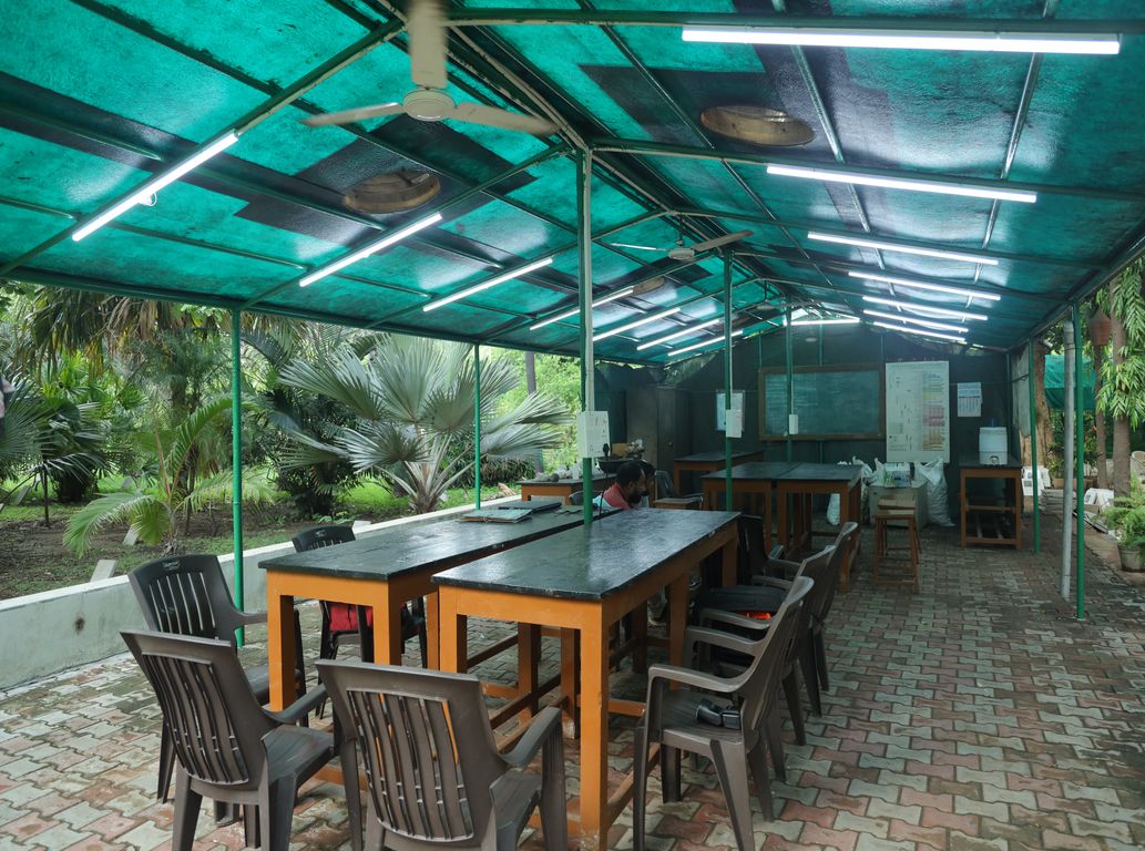 In recent times, with the financial assistance of National Medicinal Plant board, Medicinal Plant section was also added to the arboretum in the year 2009. There are approximate 350 medicinal plant plots which include plants like Acorus calamus, Alpinia galanga, Aloe ferox, Artemisia annua, Asparagus racemosus, Centella asiatica, Coleus forskohlii, Enicostema littorale, Fagonia cretica, Pedalium murex, Plumbago indica, Lotus garcini, Lycium europaeum, Monsonia senegalensis, Piper longum, Pavonia odorata, Rivinia humilis, Stevia rebaudiana, Uraria picta, Vogelia indica, Mimosa pudica, Biophytum sensitivum, Rauwolfia serpentina, Cymbopogon martini, Pogostemon heyneanus, Ocimum basilicum and Vetiveria zizanoides. The best of this natural teaching seating arrangement is open class theater which provides real world experience to the students. The main attraction of the garden is the RET plants and infrastructural facilities like Green house, Autonomous Glass house, wire house, Fern house and interpretation center which is used for preservation of RET and ornamental plants of Research. It also includes nursery, fernery, cacti collection, Diverse Germplasm collection etc. Another attraction point is Aquatic pond which having 84 different aquatic species and 41 lotus species. Botanical garden is adequately equipped with irrigation facilities and also store room, instrument room for garden Equipments. The approximate number of students at college and University level visiting the garden is about 5000 every year. In brief this Botanical garden is the best place for conservation and collection of plants.it is a repository of biodiversity.